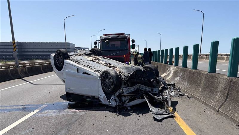 新/轎車逆向上西濱「車頭對決」1車翻覆